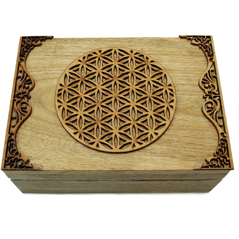 Ce coffret manguier fleur de vie fera un rangement parfait pour vos jeux de tarot, pendules divinatoires, pierres ou bijoux.