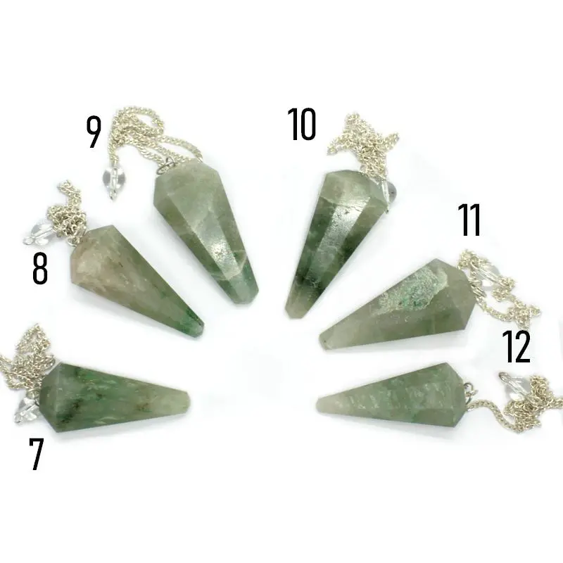 Vous recevrez le pendule facetté en Aventurine verte que vous choisissez car chaque pièce porte un numéro afin que vous puissiez choisir le votre.