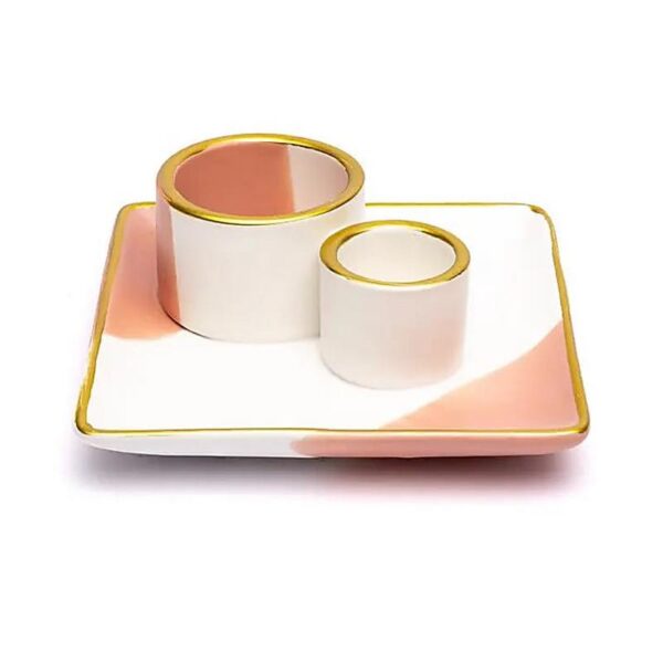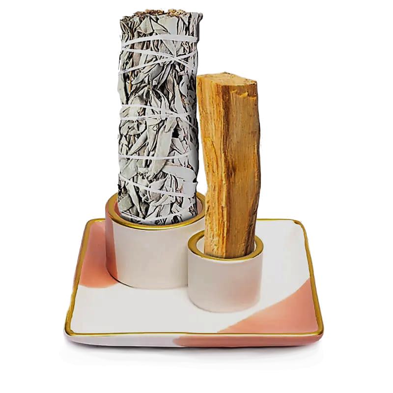 Plateau de Fumigation – Céramique rose et blanche – Purification, Harmonie & Énergie